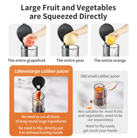 Modong 200 W Large Caliber Juicer β Extract Maximum Nutrition with Low-Speed Technology. Transform your daily wellness routine with this powerful yet gentle slow juicer. The wide 3-inch feeding chute accommodates whole fruits and vegetables, while the low-speed screw mechanism preserves essential nutrients, enzymes, and natural flavors that high-speed juicers destroy. Built for durability and safety, this juicer features BPA-free food-grade ABS plastic and stainless steel construction. At 12 lbs with a robust 250-watt motor, it handles continuous use for families and small businesses alike. Compatible with U.S. 110V outlets and meeting CE safety standards, it's engineered for long-term reliability. Versatile and convenient, it processes leafy greens, hard fruits, and everything in between. The quiet motor, anti-drip spout, and fully detachable dishwasher-safe parts make cleanup effortless. Perfect for morning wellness routines, weekend entertaining, or seasonal juice cleanses. Backed by a one-year warranty and designed for easy maintenance, this slow juicer becomes an essential kitchen companion for health-conscious households and small juice businesses.