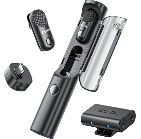 Experience superior audio capture with the BOYA Magic Wireless Mini Microphones, compatible with iPhone, Android, PC, and cameras. This versatile 4-in-1 microphone system weighs just 7g, providing portability without compromising performance. It features AI noise reduction for clear sound, records at professional 48kHz/24bit quality, and offers seamless APP control. With an impressive 328ft wireless range, it ensures freedom of movement during recording sessions, making it an ideal choice for content creators seeking reliable, high-fidelity audio on the go.