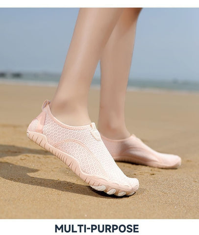 Designed for active women who demand versatility and performance, these lightweight water shoes deliver exceptional breathability and rapid moisture-wicking technology. The anti-slip sole provides secure footing on wet surfaces, making them ideal for beach outings, yoga sessions, dance classes, and swimming activities. Featuring a striking geometric design in crisp white, they combine functional water sports engineering with contemporary style. The quick-dry construction keeps your feet comfortable throughout the day, while the flexible build adapts to various water-based pursuits. Whether you're transitioning between pool and pavement or exploring coastal terrain, these shoes offer the durability and comfort serious water enthusiasts expect.