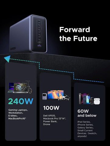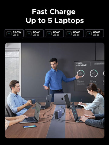 The UGREEN Nexode 500W GaN Charging Station offers a powerful and efficient solution to charge multiple devices simultaneously. Featuring six ports, including USB-C and USB-A, it supports up to 240W from a single port, ideal for fast charging laptops, smartphones, and tablets. Its advanced GaN technology ensures compact design and smart temperature control, enhancing safety and performance. Perfect for busy professionals needing reliable, space-saving power for devices like iPhone 17/16/15, Galaxy S25/S24, MacBook Pro/Air, and iPad.