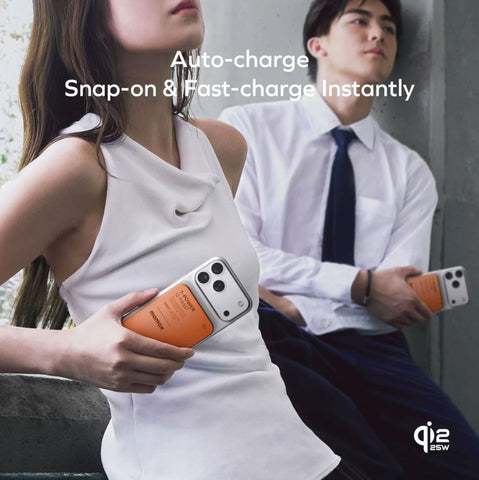 Experience next-generation wireless charging with the Q.Pass2 10000mAh Qi2.2 Magnetic Wireless Battery Pack. Certified Qi2 technology delivers a powerful 25W charge with magnetic precision, eliminating fumbling and alignment issues. The substantial 10,000mAh capacity simultaneously powers multiple devices through dual-output functionality, keeping your essentials charged throughout the day. Engineered with premium metal and tempered glass, this powerbank combines aesthetic refinement with exceptional durability. Its ultra-compact form factor and anti-slip rubber edges provide secure handling and portability. The innovative snap-on magnetic attachment activates charging instantly upon contact, streamlining your charging workflow with zero hassle.