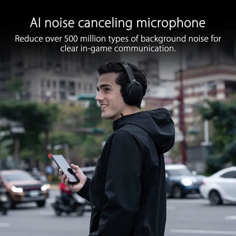 The ASUS ROG Strix Go BT Gaming Headset combines advanced Active Noise Cancellation technology to eliminate environmental noise, ensuring immersive gameplay anywhere. Equipped with Qualcomm® aptX™ Adaptive audio technology, it delivers wireless sound with low latency and high resolution for seamless, uninterrupted audio. Its industry-leading ASUS AI Noise-Canceling Microphone is discreetly integrated for crystal-clear voice communication. Featuring 40 mm ASUS Essence drivers and airtight chambers, it produces rich, pure sound with optimized deep bass. Designed for extended comfort with a lightweight build and includes a carrying case for easy portability and protection. Compatible with PCs, Nintendo Switch™, smart devices, and PS5™.
