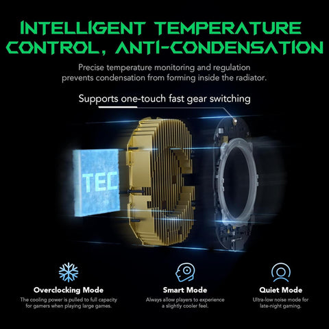 In-app control: the mobile phone cool box is adjustable in the Shark Arsenal app. Choose the power mode, adjust the speed of the fan, choose your own lighting effect and colour, and set a timer for automatic shutdown, displays the temperature in real time.
