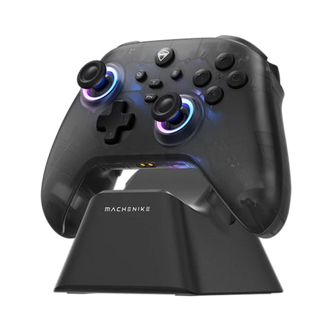 The Machenike G3 V2 gamepad includes a convenient charging dock that protects the controller while delivering fast, efficient charging via its USB-C port. Its large-capacity battery recharges quickly, supporting extended play without cable clutter. The controller features upgraded dual Hall-Effect joysticks and high-precision trigger buttons, offering exceptional control with adjustable joystick sensitivity to match different game demands. This combination ensures enhanced responsiveness and agility, elevating gameplay precision across supported platforms.