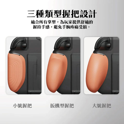 - Interchangeable grips - 3 different designs to fit all palm sizes.