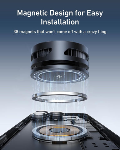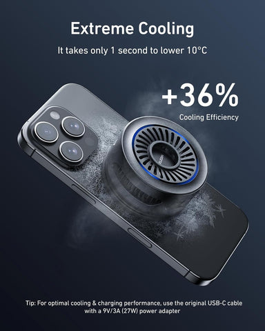 Advanced Cooling Technology & Digital Display】TELESIN magnetic cell phone cooler can drop down to -9℃ (17.6℉) within 1 minute and ice up quickly. Customized dual-core temperature control chip, easy to deal with different temperature environments. Meanwhile, the side of the cell phone cooling fan displays the fan temperature in real time, bringing you a peace of mind experience. Note: Need to access the power to use, recommended to use more than 9V3A charging head