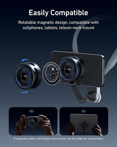TELESIN Magnetic Phone Cooler Pro for Gaming and Live Streaming Cooling Fan for MagSafe, for iPhone/Android Magnetic Neck Mount
