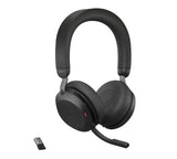The Jabra Evolve2 75 PC Wireless On-Ear Headset features advanced Active Noise Cancellation and HearThrough technology, allowing you to control your audio environment by blocking out distractions or letting in important sounds. Certified for Microsoft Teams, these headphones facilitate seamless and efficient team collaboration, delivering clear communication and superior comfort for extended use in professional settings.