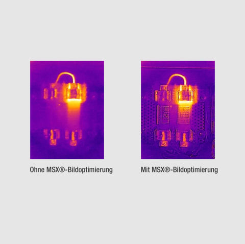- Image modes: MSX (Multi Spectral Dynamic Imaging), Visual with temperature reading