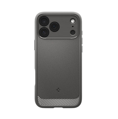 Experience military-grade protection with the Spigen Rugged Armor MagFit. Impact Foam technology absorbs shock across multi-layered corner bumpers, safeguarding your iPhone 17 Pro or Pro Max from drops and impacts. Carbon fiber texturing delivers premium aesthetics with a matte finish that resists fingerprints while providing superior grip. Fully MagSafe compatible with reinforced magnets for seamless wireless charging and accessory attachment. Tactile buttons offer precise feedback, textured side stripes enhance handling, and raised bezels protect your screen and camera lens when placed face-down. Professional-grade durability meets refined design.