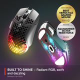 Experience true gaming precision with the SteelSeries Aerox 5 Wireless Gaming Mouse. This ultra-lightweight and water-resistant mouse features a TrueMove Air Optical Sensor for accurate tracking up to 18000 CPI. With a battery life of 180+ hours, you can game for days without recharging.