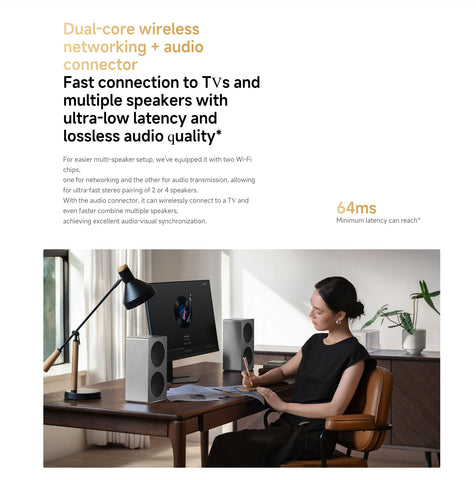 Xiaomi Sound 2 Pro features a robust metal casing that not only enhances its durability but also gives it a premium feel. Its design closely resembles the larger Sound 2 Max model, but it is more compact and cost-effective, making it accessible to a wider audience. The speaker employs a two-way crossover system with dedicated drivers for mid-range and high frequencies, ensuring crisp highs and rich bass through its 40W mid-woofer and 20W tweeter setup. With support for Bluetooth 5.2 and Wi-Fi 6, the Sound 2 Pro offers seamless wireless streaming and strong home network connectivity. It also provides RCA and USB-C inputs, allowing for easy connections to TVs, laptops, and other audio devices. Users can connect up to four Sound 2 Pro speakers at once, enabling expansive sound coverage or synchronized playback. Additionally, it integrates smoothly with Xiaomi's HyperOS smart home ecosystem, enhancing its versatility in modern living spaces.