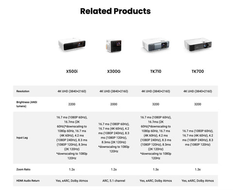 Experience immersive entertainment with the BenQ X500i, a 4K HDR 4LED short throw projector designed for both gaming and home cinema. Its advanced LED technology delivers vibrant, true-to-life colors and sharp details, while the short throw lens allows large, stunning images from minimal distance. Ideal for creating a cinematic atmosphere or enhancing your gameplay, this projector offers rich contrast and smooth motion, elevating your visual experience with professional-grade clarity and brightness. Perfectly suited for dedicated gamers and cinephiles seeking high-quality, versatile projection in any living space.