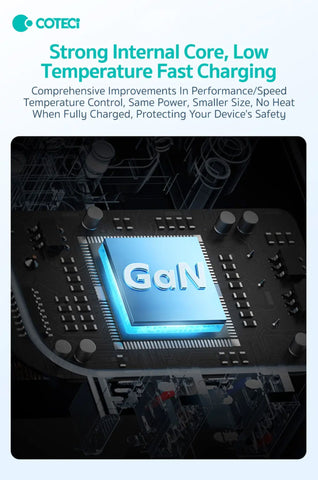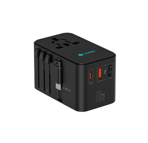 Coteci 70W GaN Universal Travel Charger (With Type-C Retractable Cable), | PD | PPS | QC3.0