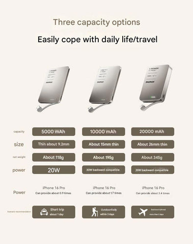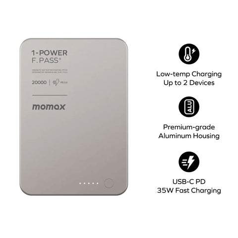 The Momax 1-Power F.Pass⁺ Battery Pack combines convenience and efficiency with its built-in cable and magnetic attachment, providing a seamless charging experience. Its compact design ensures easy portability, while the integrated cable reduces clutter and the magnetic feature securely holds the pack in place during use. Ideal for professionals on the move, it delivers reliable power backup without the need for extra accessories.