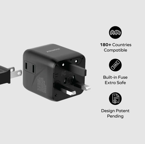 The Momax 1-World Universal Travel Charger combines portability with safety, weighing only 98g for effortless transport in any bag. Its compact design suits spontaneous trips and tight packing, while built-in fuse protection and premium materials ensure device safety and long-lasting durability. This charger offers reliable power with peace of mind, making it an indispensable companion for global travelers.