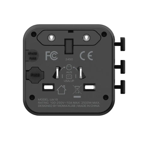 Momax 1-World Universal Travel Charger with Dual AC 100-250V 10A MAX 2500W MAX