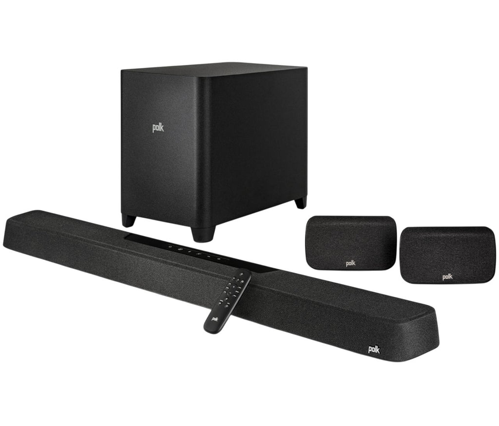 The Polk MagniFi Max AX SR system elevates entertainment with 7.1.2 Dolby Atmos and DTS:X surround sound, driven by an 11-driver SDA-optimized sound bar, wireless surrounds, and a 10" wireless subwoofer. Its STEREO/DIMENSIONAL ARRAY® technology and VoiceAdjust™ enhance clear, immersive audio across movies, TV, music, and games. The system supports Bluetooth and Wi-Fi streaming, featuring compatibility with Google Chromecast, Apple AirPlay, and Spotify Connect for versatile connectivity. Measuring 45" x 2.8" x 4.6", this sound bar delivers expert-grade, three-dimensional sound that transforms any living space into a premium home theater.