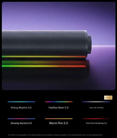 The Redmi Computer Speaker 2 Pro delivers 20W of clear, powerful sound enhanced by two passive radiators for deep bass performance. Featuring Bluetooth 5.3, it ensures stable wireless connectivity with low latency. The RGB backlighting adds a dynamic visual element, complementing its sleek metal mesh design. Combining modern technology with robust audio output, this speaker is ideal for professionals seeking immersive sound and seamless control in a stylish desktop accessory.