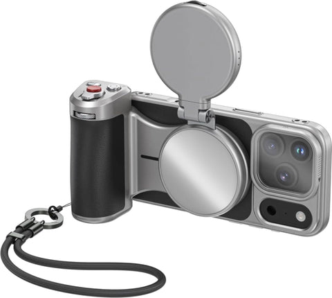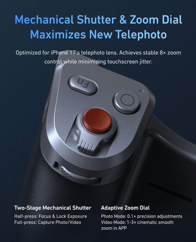 The TELESIN Master Grip for iPhone 17 Pro and Pro Max combines durable PC, aluminum alloy, silicone, and magnet materials for a secure and comfortable hold. Designed specifically for iPhone 17 Pro and Pro Max models, it offers a robust Type-C rechargeable 3200mAh battery to ensure extended usage. Its dimensions (11.7 x 8.1 x 22.6 cm) and weight options—including upgraded versions—balance ergonomics with functionality, enhancing your device's handling experience with stability and precision.
