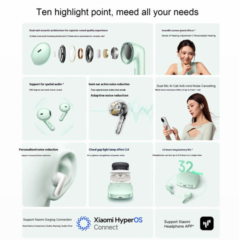 Xiaomi Redmi Buds 7S TWS Earbuds bluetooth V5.4 Earphone ANC Double Drivers 360° Surround Stereo Dual Mic AI Call Noise Cancelling 32H Playback Semi-in-ear Sports Headphones