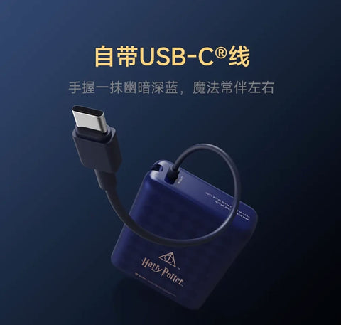 Experience magical charging with the Harry Potter x Xiaomi 33W Power Bank 10000mAh. Featuring a deep blue wizard-chess design and the iconic Deathly Hallows logo, this power bank offers fast, efficient charging with a built-in cable for seamless use. Its compact size makes it an ideal companion for Potter fans who need reliable power on the go. Pricing reflects the inclusion of overseas shipping for the high-capacity battery.
