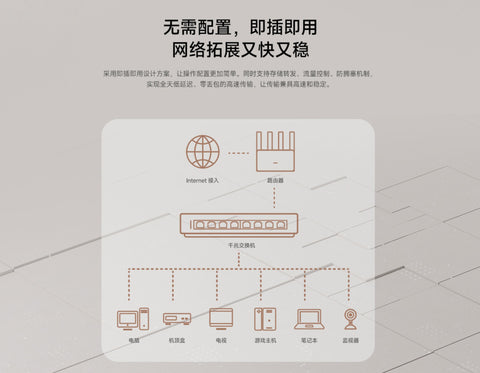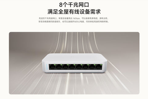 The Xiaomi Gigabit Ethernet Switch (8 ports) delivers robust network performance with 8 adaptive 10/100/1000Mbps ports, supporting seamless high-speed connectivity. Its 16Gbps forwarding capacity and 11.90Mpps packet rate ensure efficient data handling for demanding internet environments. The switch supports widely adopted IEEE standards and operates with natural cooling for reliable, silent operation. Equipped with system and port indicator lights, it offers clear network status monitoring. Designed for versatile installation as wall-mounted or desktop, this switch meets strict quality and safety standards (GB/T 9254.1-2021; GB 4943.1-2022), making it ideal for professional networking setups.