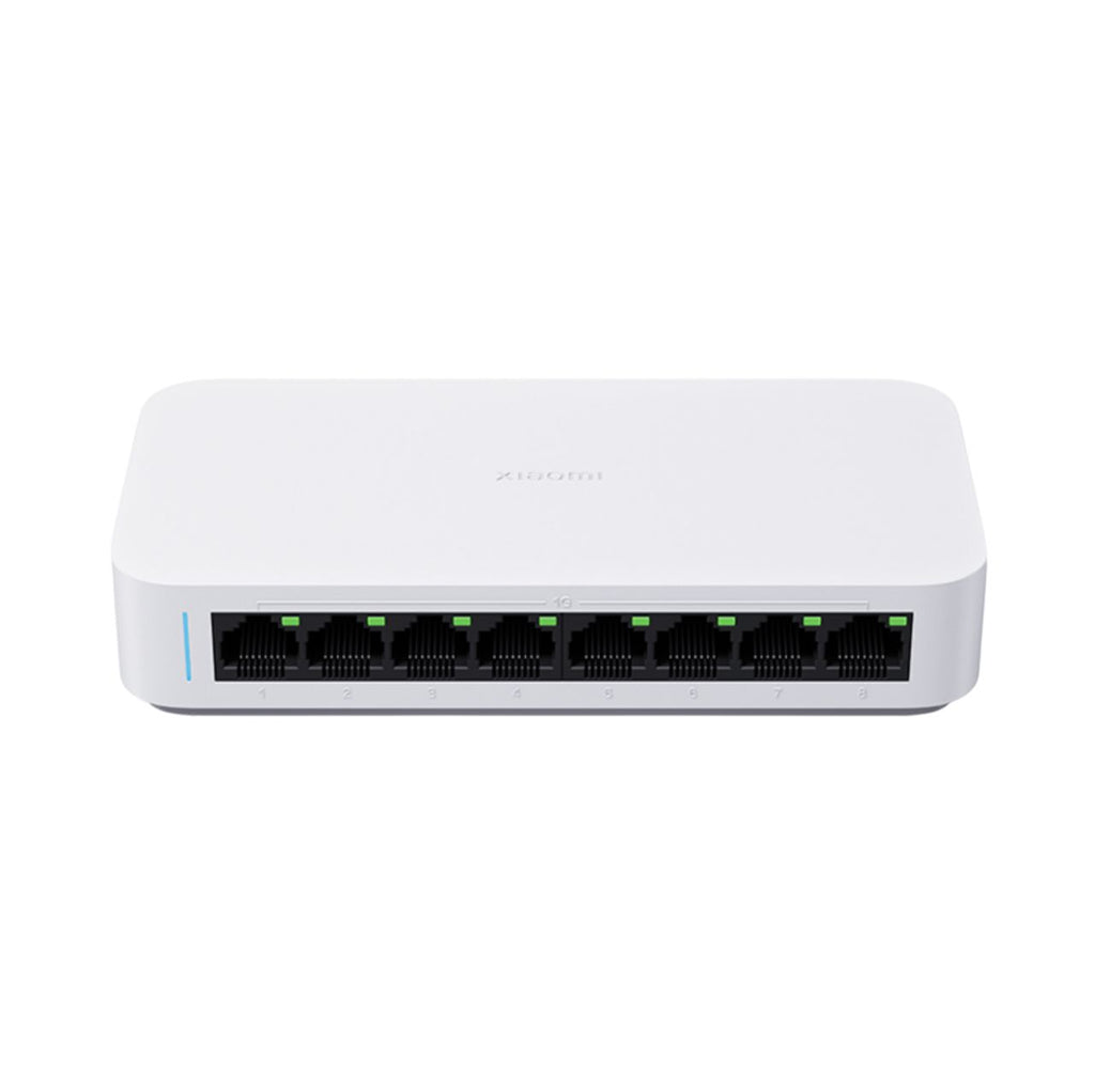 The Xiaomi Gigabit Ethernet Switch features a compact design measuring 124×59×23mm, making it easy to fit in tight spaces. Finished in a clean white color, it combines discreet aesthetics with high functionality. This 8-port switch supports 10/100/1000Mbps speeds and offers a 16 Gbps forwarding capacity, delivering reliable and efficient network performance suitable for professional environments.