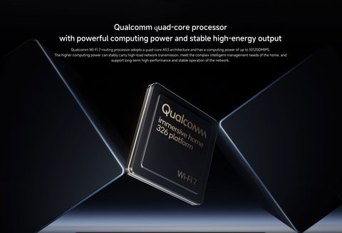 The Xiaomi Router BE6500 harnesses a Qualcomm quad-core A53 1.1GHz processor paired with 512MB memory to deliver high-performance networking. Supporting WiFi 7 standards, it offers dual-band connectivity with 2.4GHz (2x2, up to 688.2Mbps) and 5GHz (4x4 160MHz, up to 5764.7Mbps) speeds. Equipped with six external high-gain antennas and four adaptive 10/100/1000/2500Mbps WAN/LAN ports, it ensures expansive coverage and stable, ultra-fast wired connections. Natural cooling and a dedicated mesh button enhance reliability and easy integration into mesh networks, making it ideal for demanding expert-level network environments.