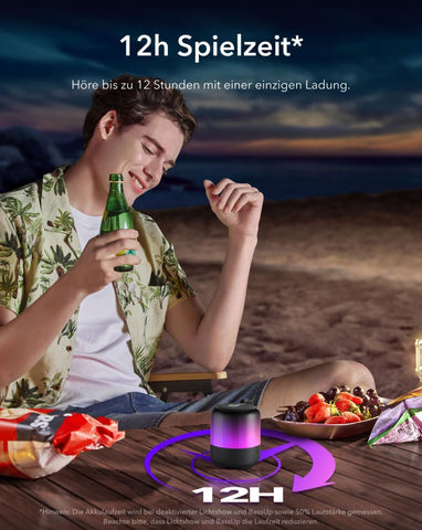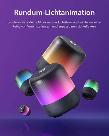 The Anker Soundcore Glow Mini delivers immersive 360-degree audio through its 8W speaker and passive radiator, ensuring sound reaches every corner of your space. Synchronized full-body LED lighting transforms any gathering into a dynamic visual experience that pulses with your music. Built with IP67 waterproof and dustproof certification, it floats effortlessly, making it ideal for poolside sessions and outdoor adventures. Enjoy up to 12 hours of uninterrupted playback on a single charge, with the flexibility to prioritize either extended battery life or enhanced light effects based on your preference.