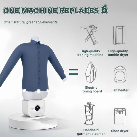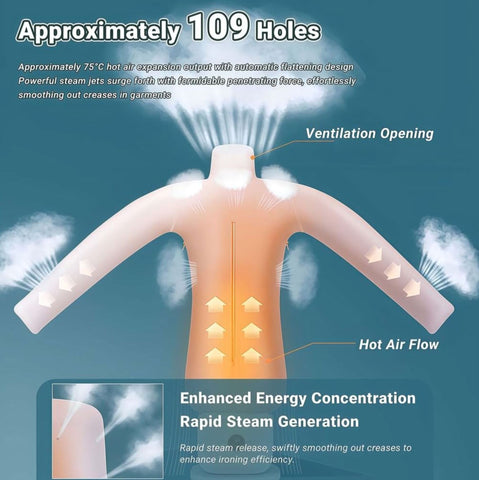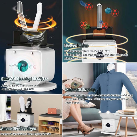 Experience professional-grade garment care with Furper's automatic hot air dryer and iron system. Engineered with premium materials and advanced steam technology, this 1000-watt machine generates powerful steam that penetrates fabrics through precisely calibrated 75° hot air expansion for superior wrinkle removal. The innovative air mold features 109 strategically positioned holes, delivering consistent warmth and steam distribution across garments. Accommodates substantial loads with its expansive capacity, complete with dedicated molds and hangers for shirts and trousers. Designed for seamless portability, this intelligent system operates with minimal noise while adapting to your ironing schedule. Ideal for both residential and professional settings, it transforms garment maintenance into an effortless, time-saving process.