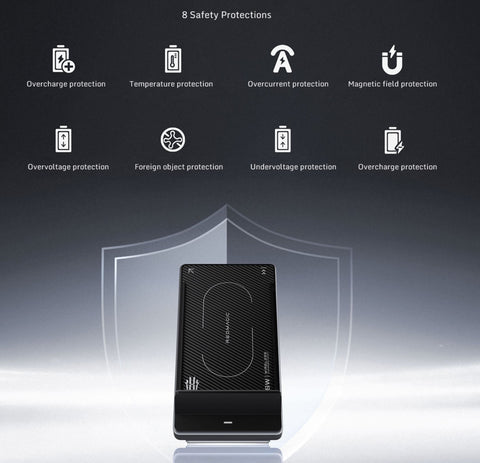 The REDMAGIC DAO 80W Desktop Air-Cooled Wireless Charger combines innovative engineering with striking design to deliver exceptional charging performance. Its intelligently angled platform functions as both a high-speed wireless charger and a versatile phone stand, accommodating horizontal and vertical orientations for seamless workflow integration. With 80W of wireless fast charging power, it rapidly replenishes even demanding flagship devices without compromise. The charger's deuterium silver finish, paired with carbon fiber texturing creates a distinctly modern aesthetic that elevates any desktop environment. Its intelligent adaptive air cooling system, powered by a 5000 RPM fan, dynamically regulates temperature based on real-time charging conditions, preventing thermal stress and maintaining peak efficiency. Eight comprehensive safety protocols guard against overcharging, electromagnetic interference, and thermal hazards, while multi-point anti-slip technology ensures stable device positioning. Universal compatibility spans both Android and iPhone ecosystems, making it an ideal solution for multi-device households and professional settings.