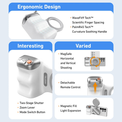 The Fun Shot Magnetic Grip provides an ultra-strong magnetic hold with N52-grade magnets, ensuring a shake-free experience during activities. Its anti-slip texture and soft silicone coating protect your phone from scratches. And with ultra-low power consumption and a slim, lightweight design, you won't need to worry about charging.