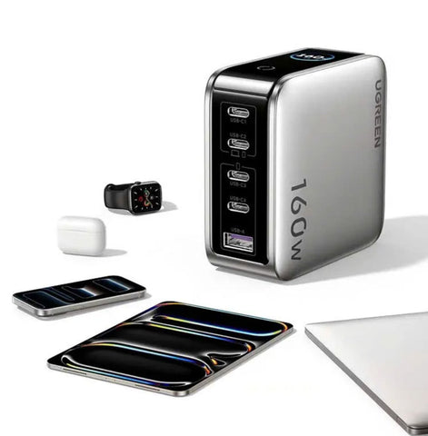 The UGREEN 160W Fast Charging Display GaN Five-Port Charger delivers professional-grade power management for multi-device environments. Its 4C1A configuration distributes 160W across five simultaneous connections with intelligent allocation, ensuring optimal charging speeds without compromise. The integrated display provides real-time visibility into fast charging protocols and power distribution, eliminating guesswork. With PD3.1 support delivering up to 140W from dual C-ports, this charger handles demanding devices—laptops, tablets, and smartphones—with maximum efficiency. Broad protocol compatibility, including PD, PPS, and UFCS ensures seamless integration across your entire device ecosystem, making it an essential solution for power users and professionals managing multiple gadgets.