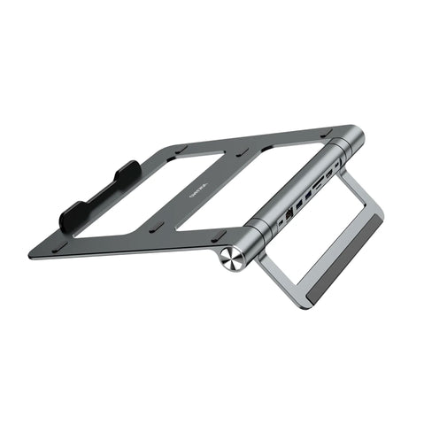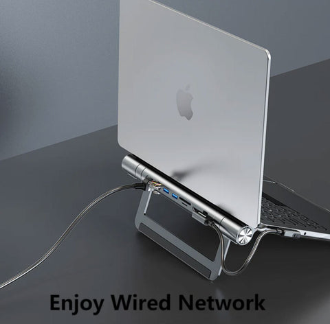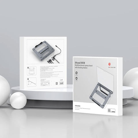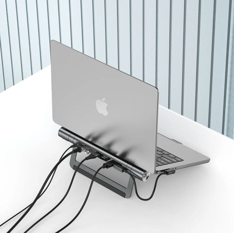 iStand HUB Multi-Function MacBook Stand combines premium aluminum construction with versatile connectivity. This 2-in-1 stand and USB-C docking station elevates your laptop while providing essential ports: PD charging (up to 100W), dual USB 3.0, and HDMI 4K@30Hz output, SD/TF card reader, and Gigabit Ethernet. Compatible with 13-17.3-inch devices, it transforms your workspace into a productive multi-monitor setup. Ergonomic design reduces neck strain while expanding your connectivity options—perfect for professionals who demand both comfort and functionality.